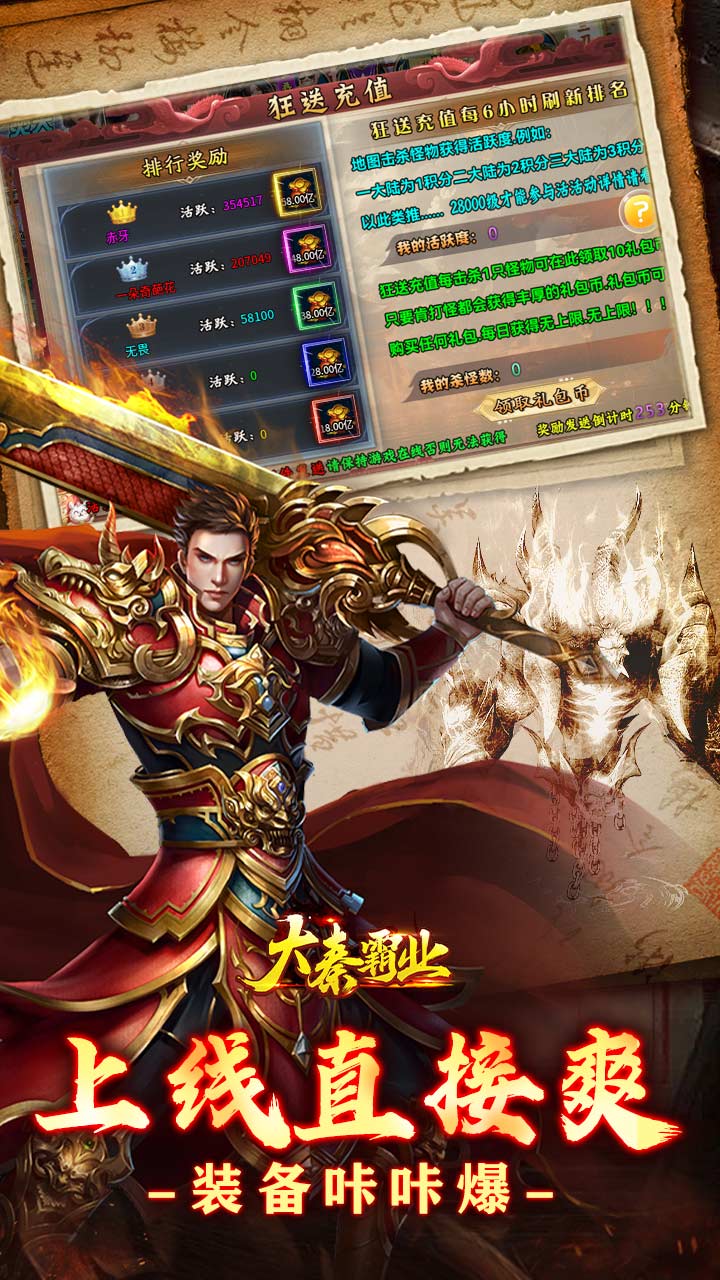 打怪就给礼包币!礼包币=所有大陆礼包!三把大刀环绕自身,四倍打怪速度爽到爆!上线就送免费狂龙,免费仙尊,免费神霄,免费魔渊,免费礼包;本服特色:不卡大陆-毫无套路-时间=称霸服务器!千种装备万种地图,超变玩的就是爽爽爽爽爽!!!千种隐藏BUFF+武学+幻化+英魂+超多好玩玩法等你探索!上线直接爽!礼包直接拿!装备咔咔爆!玩服宗旨爽!!