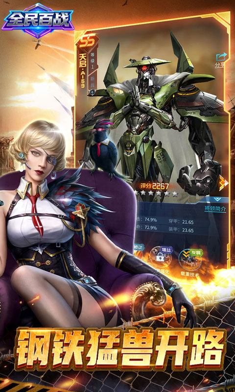 《全民百战》是一款以军事科技为主题的3D写实风格战争策略手游。由于晶能矿的发掘,地球科技实现了质的飞跃,却也引来了外星文明的入侵,地球陷入了一片废墟之中。作为人类领袖,你将扮演关键角色,亲自指挥和训练自己的队伍;通过在虚拟而真实的战场上自由部署兵力,探索最适合自己进攻或防守的战术。游戏中有数百种不同的战争武器等你研发和获取,每种武器的发展方向都不同,你需要带领他们参与惊险刺激的战斗,为了人类的未来而奋斗!