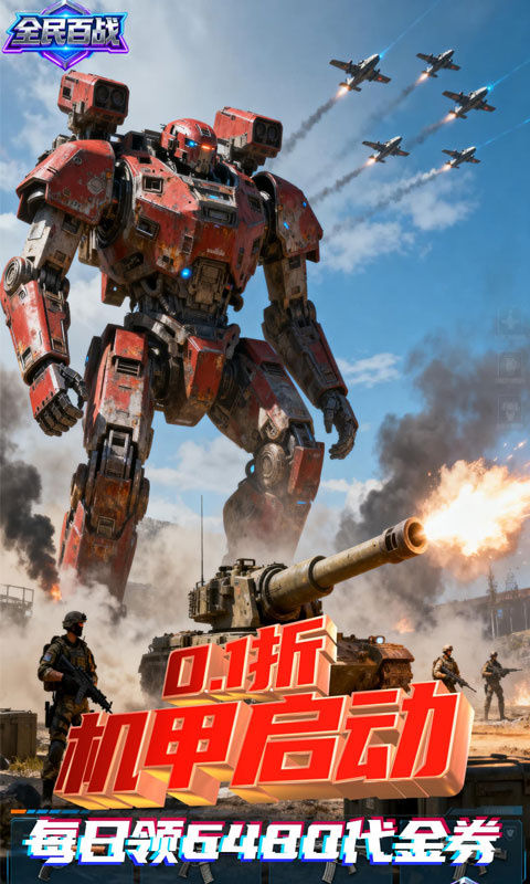 ★永久任意充值仅需0.1折,每日领6480代金券 ★创角送V10、18888金币、600万资源 ★累计登录送SS级机甲天启、S级狂豹 ★月卡免费领,原版物价不膨胀 ★充值比例1:50金币