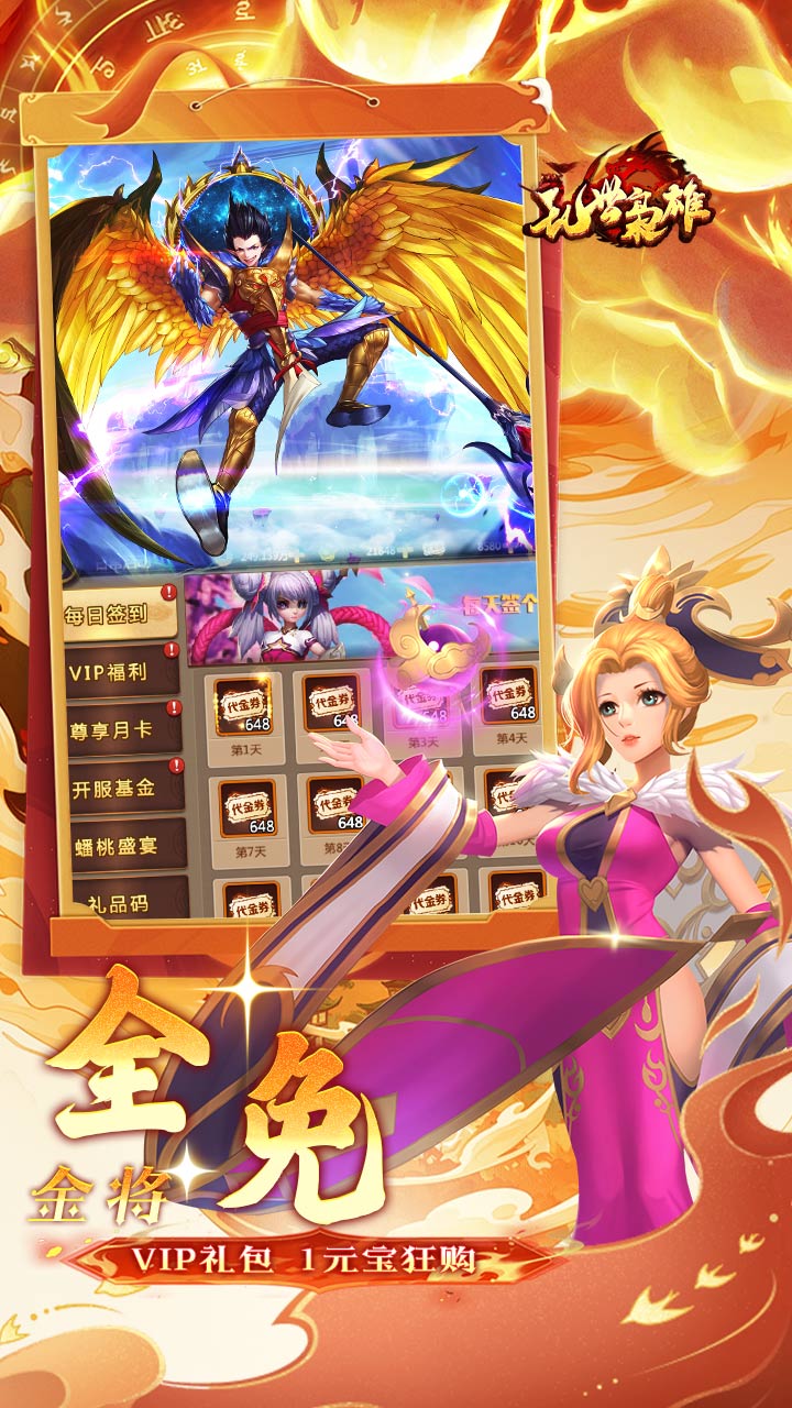 1、0.1折免费代金:每日签到免费送648元代金! 2、0.1折免费开局:创角福利送孙悟空,大圣重临,诛神灭佛! 3、0.1折商城狂欢:金将金神兵金装备,白嫖代金券免费买买买! 4、0.1折充值福利:全场充值直降99%,首续永久0.1折! 5、0.1折VIP礼包:所有VIP专属豪华礼包,1元宝任意购!