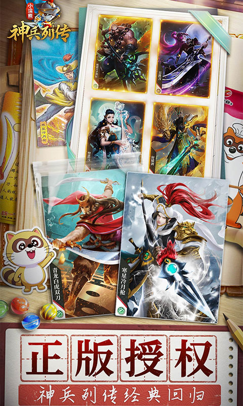 《小浣熊神兵列传》是由统一小浣熊正版授权改编的国风3D卡牌手游,游戏以架空世界圣元大陆为背景,玩家需招揽来自《山海经》《封神演义》《三国演义》《水浒传》《隋唐演义》等经典IP的华夏英雄,通过策略性卡牌养成与阵容搭配展开战斗。其核心玩法融合了放置、策略对战与副本挑战,并采用竖屏操作和国潮美术风格。