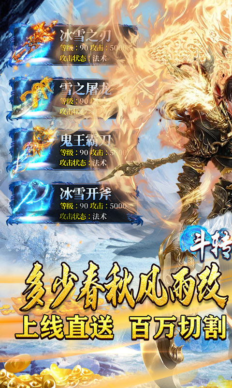 斗转武林(无尽盖世强者),超变超快攻速,全新大陆等你征战!自动回收全屏吸取百万切割统统送,跨服攻城等你来战,在线还能得货币!还在等什么?赶紧加入吧!